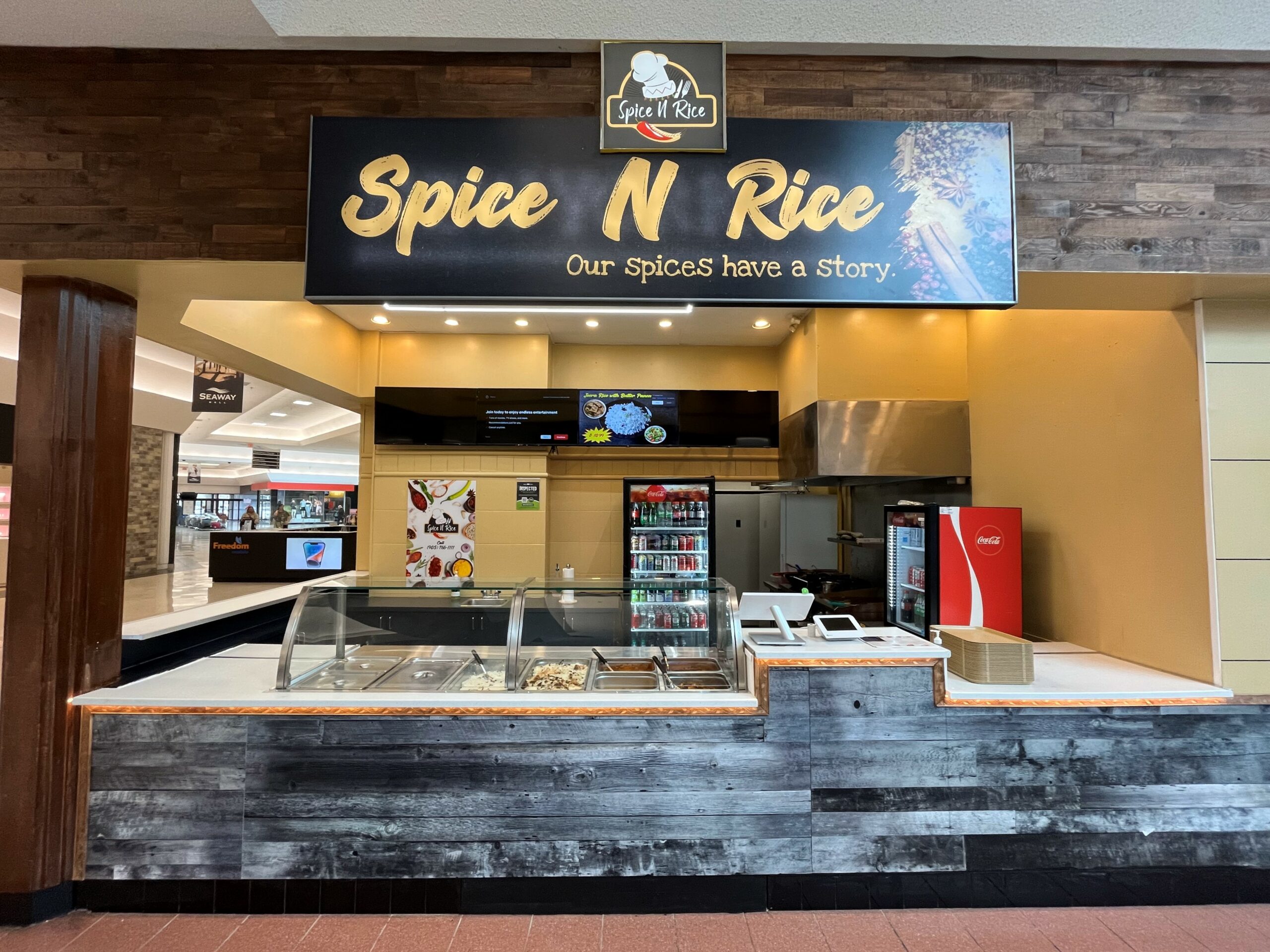 Try the best, authentic flavours, right from the South of India! This food court restaurant specializes in butter chicken dishes, butter paneer, shawarma wraps, biriyani, ghee rice, varieties of dosa, lassi, faloodas, and more! Don’t forget to try their fusion items which include butter chicken poutine! Stop in to chat up a storm and work off your appetite with some amazing Indian cuisine!